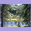 | As we neared the end of our trail, we came upon Coon Lake. What a nice surprise that was! We emerged from the woods into a meadow and there it was! It looked smaller on our maps but was really pretty in the still, hot, afternoon. I would love to come back around dusk to hear the frogs. As it was, though, we were amused by the dragonflies buzzing here and there, busy catching bugs. | |||