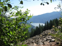 | The trail up Wind Mountain is rough in places and steep everywhere. The trail gains over 1200 feet in just about a mile. It's well worth it, though, to experience the deep, quiet woods along the way and the wind-swept ridge at the top. There are native American vision quest sites, called 'talus sites', there and several signs warn about not disturbing them. Although there are no artifacts, the sites are considered archeologically significant, and besides that, they are sacred to the native tribes who created them. |
